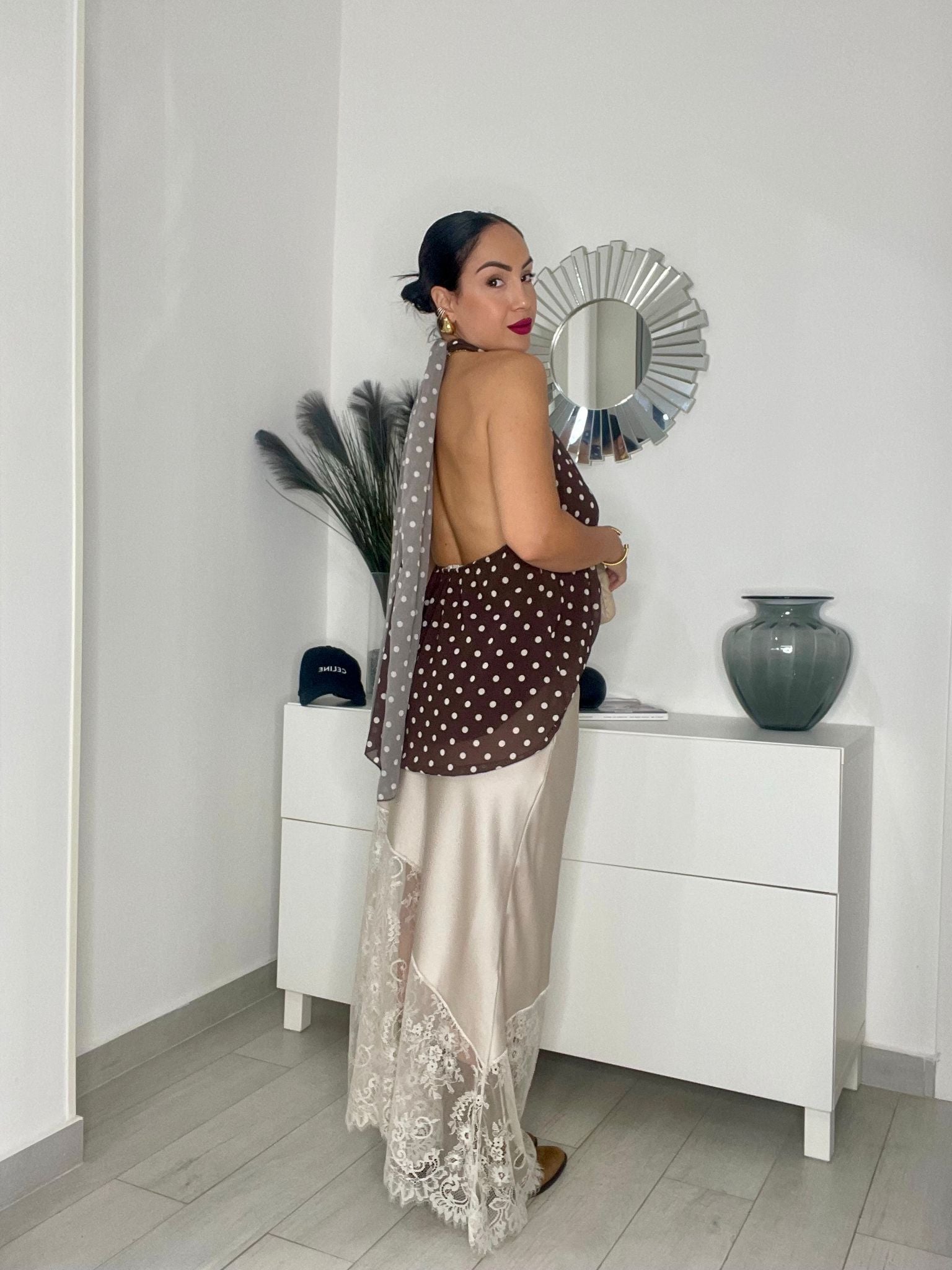 Giada è alta 1,60cm e indossa una taglia UNICA.