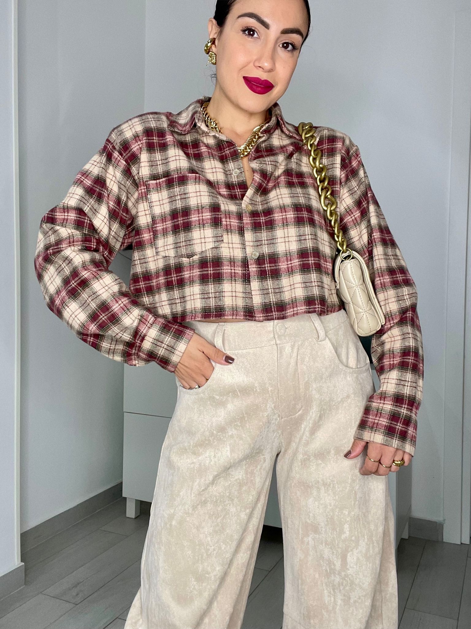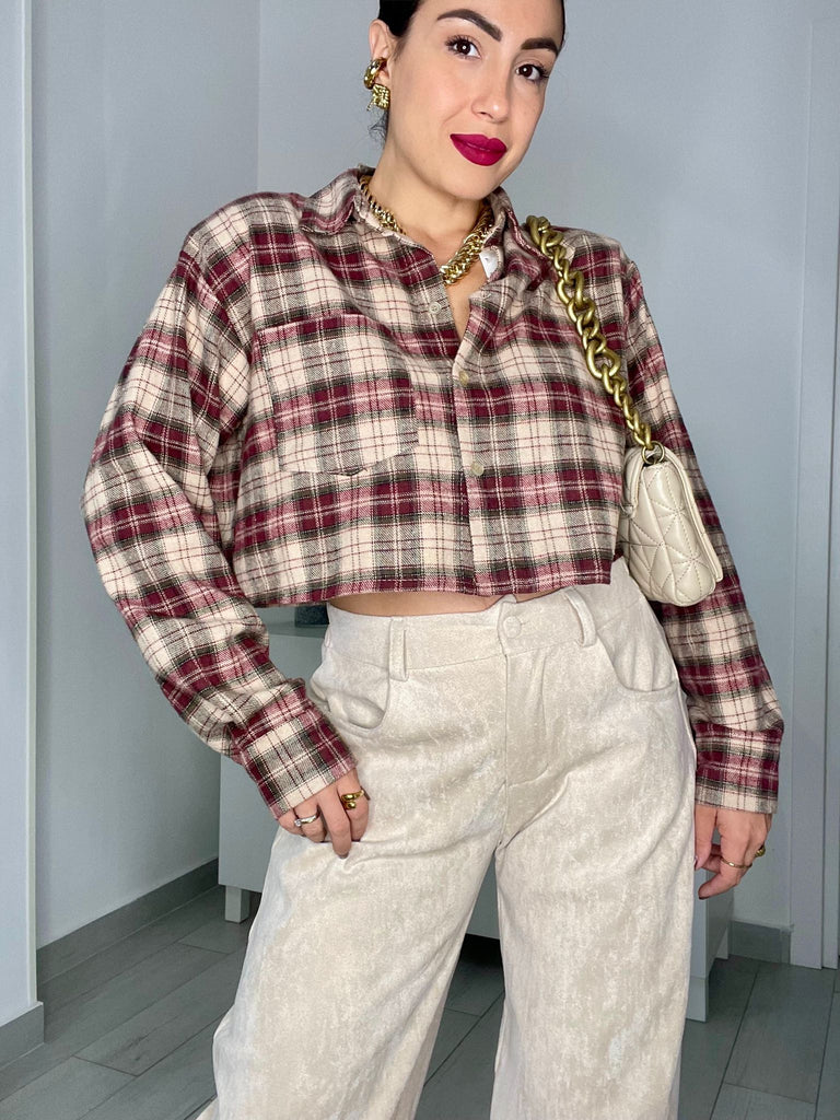 Camicia crop a quadri con spalline.