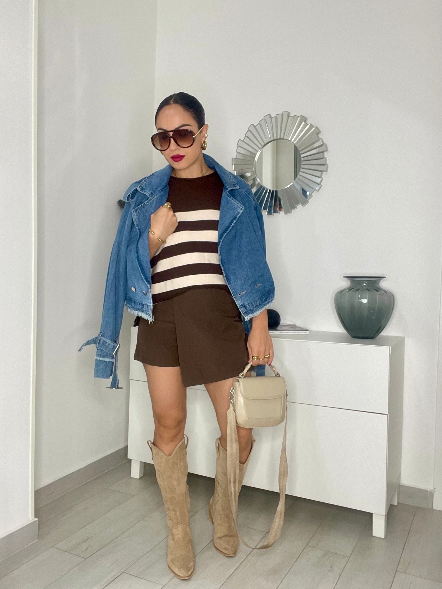 Giada è alta 1,60cm e indossa una taglia M.