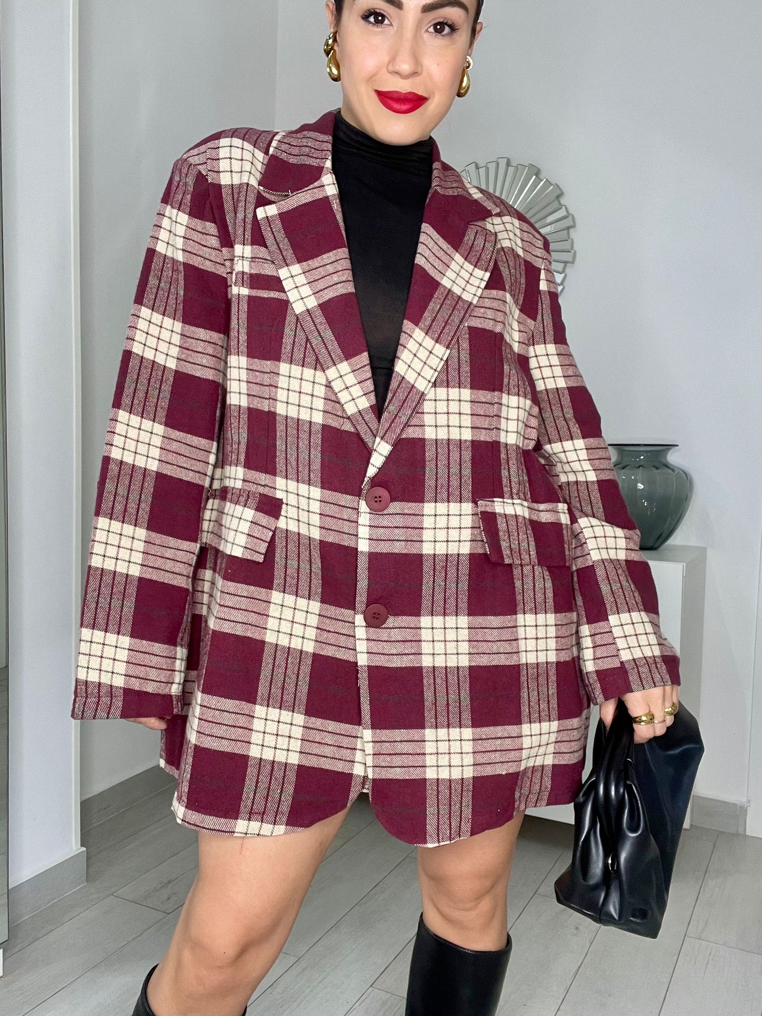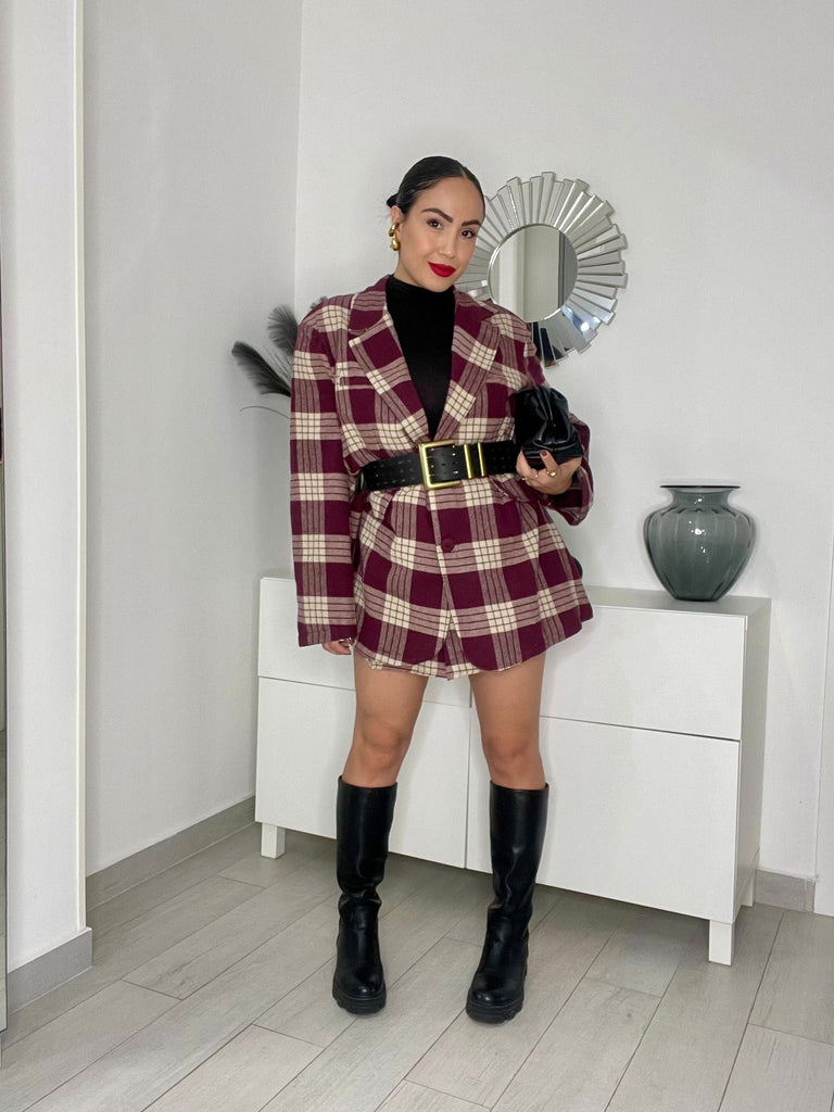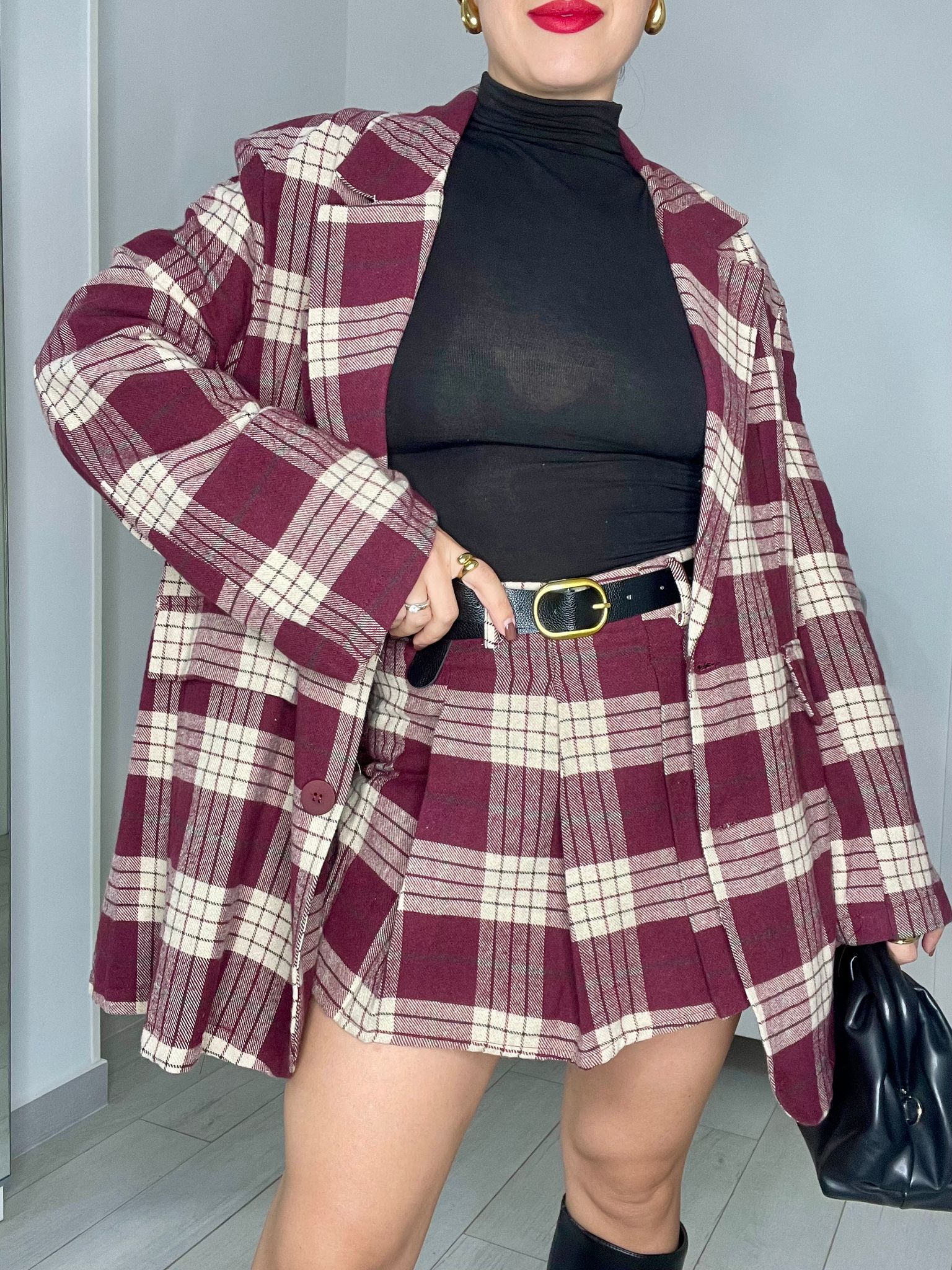 Coordinato a quadri composto da blazer oversize e pantagonna con zip laterale incluso di cinturino.